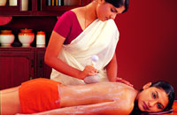 Autres traitements possibles (non exhaustif) UDVARTHANAM Pour hémiplégie, obésité et certaines affections rhumatismales. Massages thérapeutiques aux herbes. MARMA CHIKITSA Traitement pour les muscles et les os suite à un traumatisme ou un accident. Ce traitement est basé sur les marmas, points vitaux sensibles au nombre de 107. NASYAM Pour les affections nasales. Inhalations de préparations médicinales, décoctions, beurre, etc... pour évacuer de la tête et de la zône du cou les miasmes. KARNAPOORAM Traitement pour les affections des oreilles. Des huiles médicinales sont versées dans l'oreille pendant 5 à 10 minutes par jour, tant pour nettoyer que pour soigner les diffrentes affections. THARPANAM Prévention de la cataracte et renforcement de la vision. Un traitement efficace pour renforcer aussi le nerf optique. NAVARAKIZHI