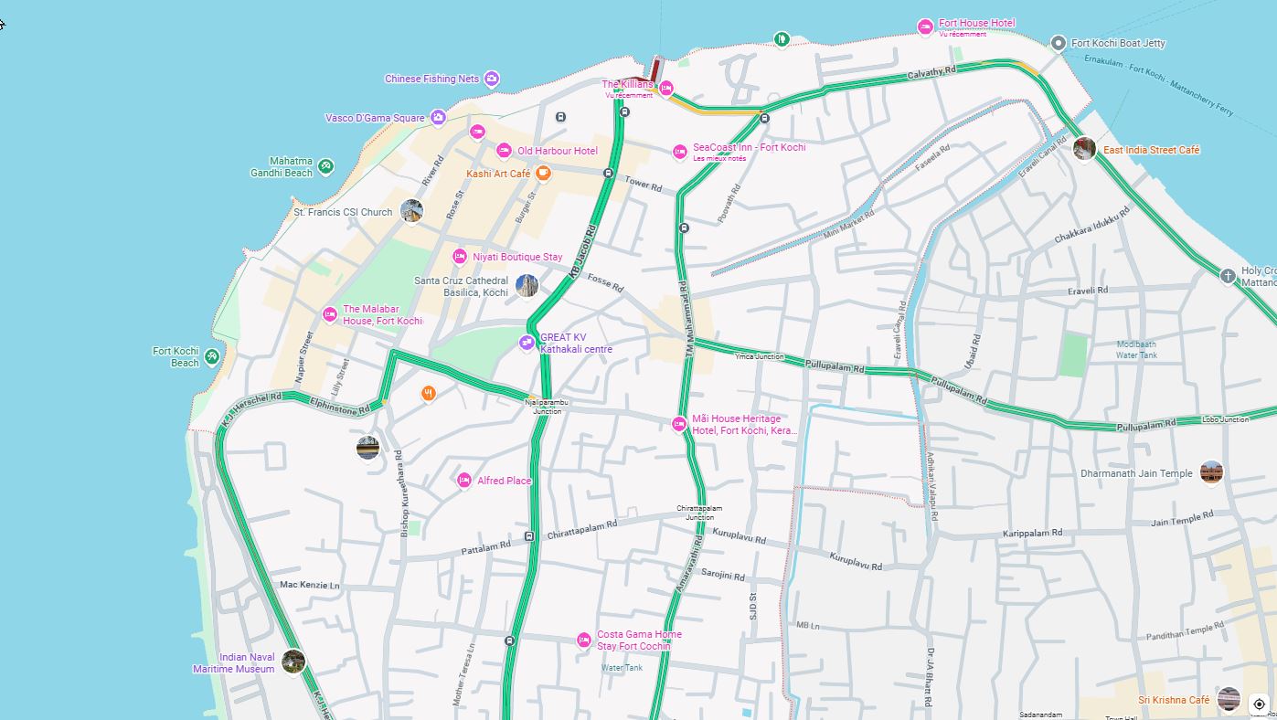 COCHIN et ERNAKULAM, villes voisines, forment une conurbation, mais sont très différentes, tant par leur style de vie que par leur charme : l'une est coloniale, calme, verdoyante, l'autre est moderne, bruyante, polluée et surpeuplée. Pourtant elles se touchent, et il suffit de quelques minutes de bateau pour passer de l'une à l'autre. Y faire une cure ayurvédique n'est a priori pas l'idéal, étant donné la nécessité du calme et d'air pur, c'est pourquoi vous trouverez peu de centres de cures importants à Cochin, par contre, il y a des laboratoires, et bien sûr certains hôtels ont des centres de soins, ou des spas ayurvédiques. On y trouve aussi des hôpitaux traditionnels qui ont été rejoints par la ville, mais qui n'ont pas déménagé. Il s'agit plus là de centres médicaux pour les indiens que des lieux de villégiatures pour occidentaux. Par contre la vieille ville de Cochin est incontournable si l'on doit passer dans la région. Elle vaut vraiment la visite, même si les (quelques) hôtels sont très demandés et proposent des tarifs en conséquence. Il est bon d'y passer au moins deux jours, pour rêver sur une époque révolue, mais aussi goûter au charme d'une ville qui n'a pas encore rattrapé le monde moderne et garde un petit charme colonial très 19ème.