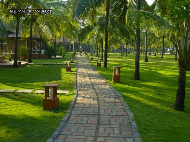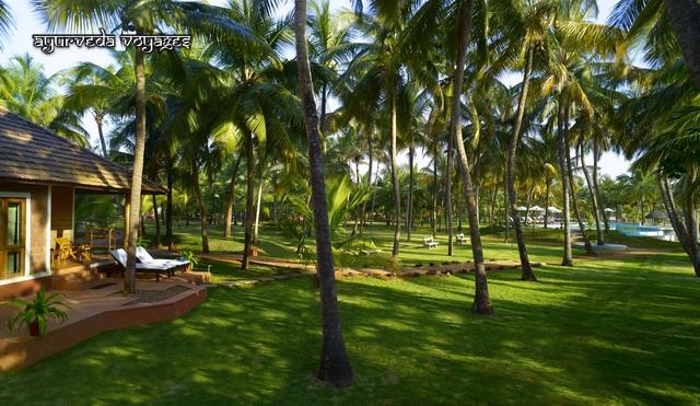 Le grand espace (5 hectares peuplés de cocotiers, avec une pelouse magnifique, tondue à la main par les femmes du village voisin), la plage, les bungalows confortables et le vaidyasala flambant neuf, le service irréprochable, le temps qui s'écoule, sont autant d'atouts pour que la cure soit aussi des vacances. Il y a même un court de tennis et des canoë-kayaks.