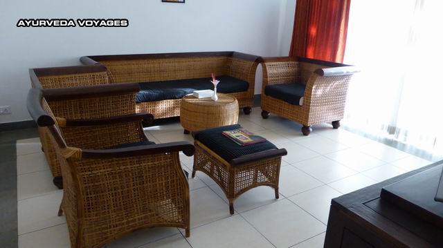 de luxe sobre et raffiné. Des tons pastels, du rotin, beaucoup d'espace, et à l'extérieur, un foisonnement végétal savamment contrôlé puisqu'il nourrit et soigne les patients du Rajah Beach.